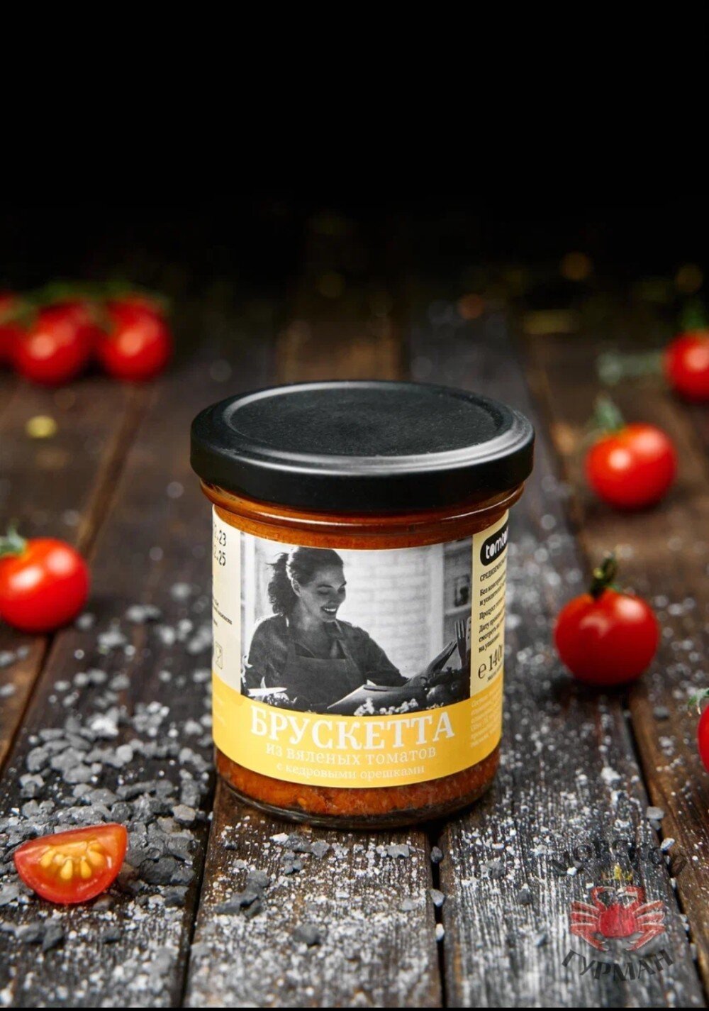 томаты вяленые, масло оливковое рафинированное с добавлением оливковых масел не рафинированных Olive Oil, кедровые орехи, соль пищевая, прованские травы (базилик, майоран, тимьян, чабер, розмарин, орегано). Без консервантов, красителей и усилителей вкуса.