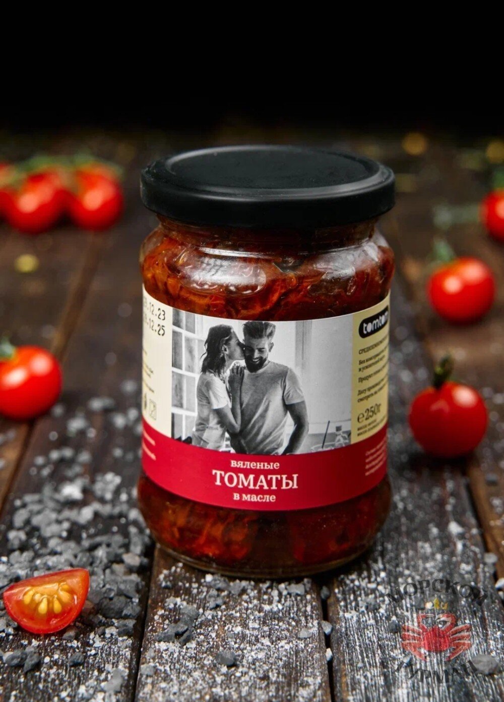 Состав: томаты вяленые, масло подсолнечное рафинированное, дезодорированное «Высший сорт», вымороженное, соль пищевая.