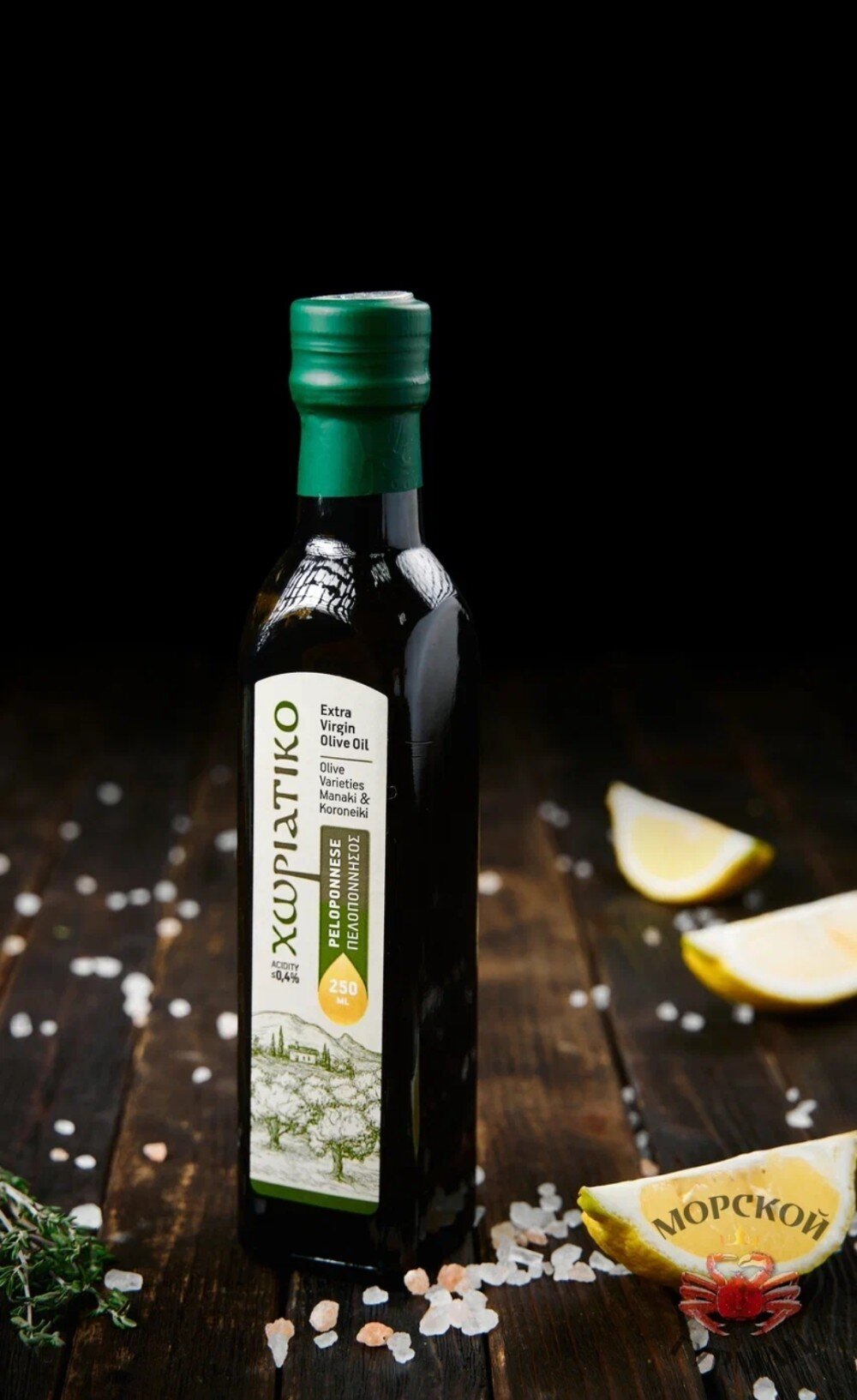 Производитель Horiatiko. Оливковое рафинированное масло высшего качества. Первый холодный отжим. Простое, ароматное, очень мягкое деревенское масло.