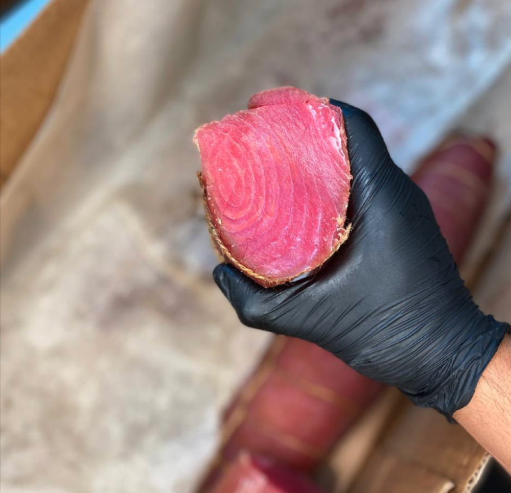 Средней соли, холодное натуральное копчение, без жидкого дыма. Тунец холодного копчения имеет очень сочное и нежное мясо, напоминающее по вкусу парную телятину. Во многих странах мира он признан деликатесом. Копчение придает тунцу тонкие дымные нотки.
