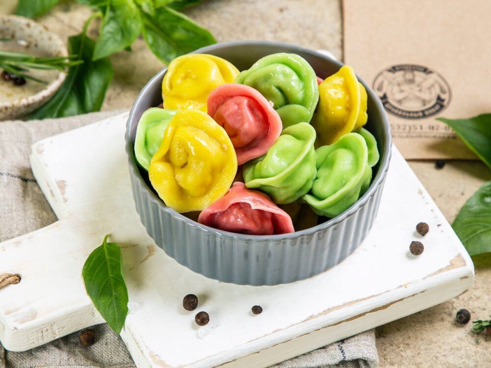 Разноцветные пельмени из индейки. Цена указана за упаковку 450 грамм